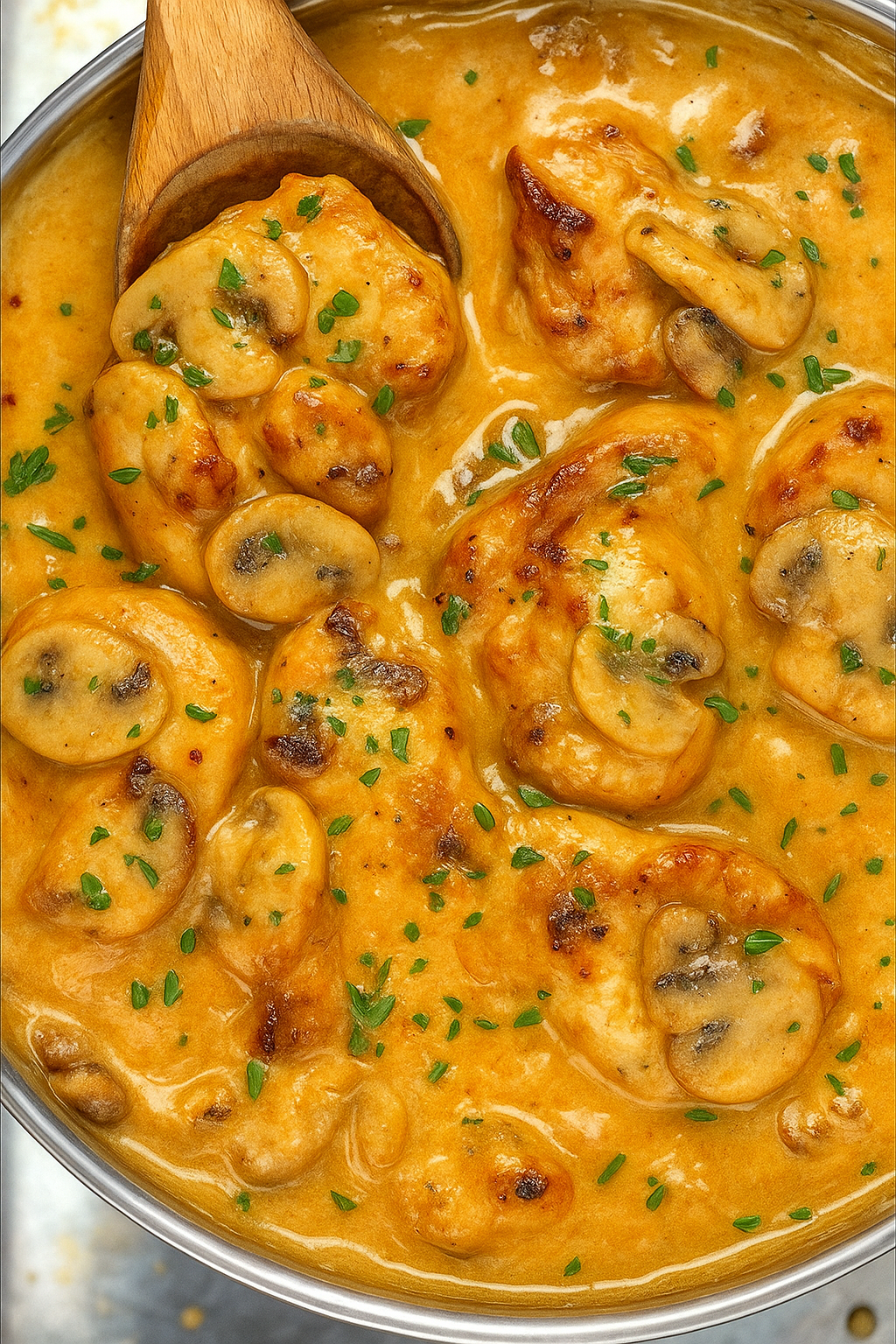 Lust auf ein warmes und aromatisches Wohlfühlessen , das Sie mit einem einzigen Bissen umhüllt? Dieses cremige Chicken Stroganoff ist genau das Richtige für Sie. Zarte Hähnchenbrust, saftige Champignons, eine cremige Senfsauce und ein Hauch Sojasauce ergeben ein perfekt ausgewogenes Gericht, das Sie mit Nudeln oder Reis servieren können. Wohlfühlessen war noch nie so einfach und lecker!