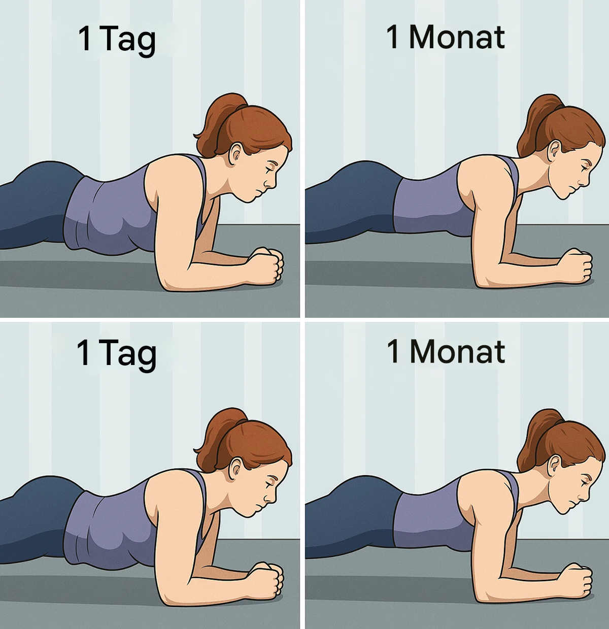 Dabei liegt man mehrere Minuten lang auf einer Matte, stützt den Körper mit den Ellbogen ab und spannt dabei die Bauchmuskeln an.