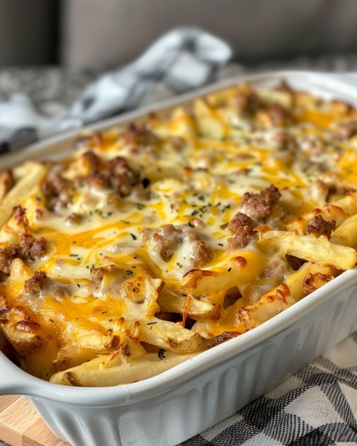 Unsere Familie liebt es, den Tag mit etwas Herzhaftem zu beginnen, und dieser Pommes-Frühstücksauflauf ist genau das Richtige. Er vereint den beliebten Genuss knuspriger Pommes mit der Gemütlichkeit eines traditionellen Frühstücksauflaufs. Dieses Gericht ist perfekt für entspannte Wochenendmorgen oder wenn Sie Gäste zum Brunch haben. Es ist eine köstliche Möglichkeit, die übrig gebliebenen Pommes aufzupeppen und Ihrem Frühstück eine besondere Note zu verleihen.
