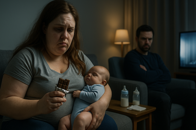 Valeria war völlig erschöpft. Sie konnte sich nicht einmal waschen und vergaß Schlaf und Essen. Essen war ihre einzige Fluchtmöglichkeit – heimliche Snacks, Schokoriegel unter dem Kopfkissen und Kuchen am Abend, wenn die Kinder schliefen. Ihr Gewicht wuchs und mit ihr die Verachtung ihres Mannes.