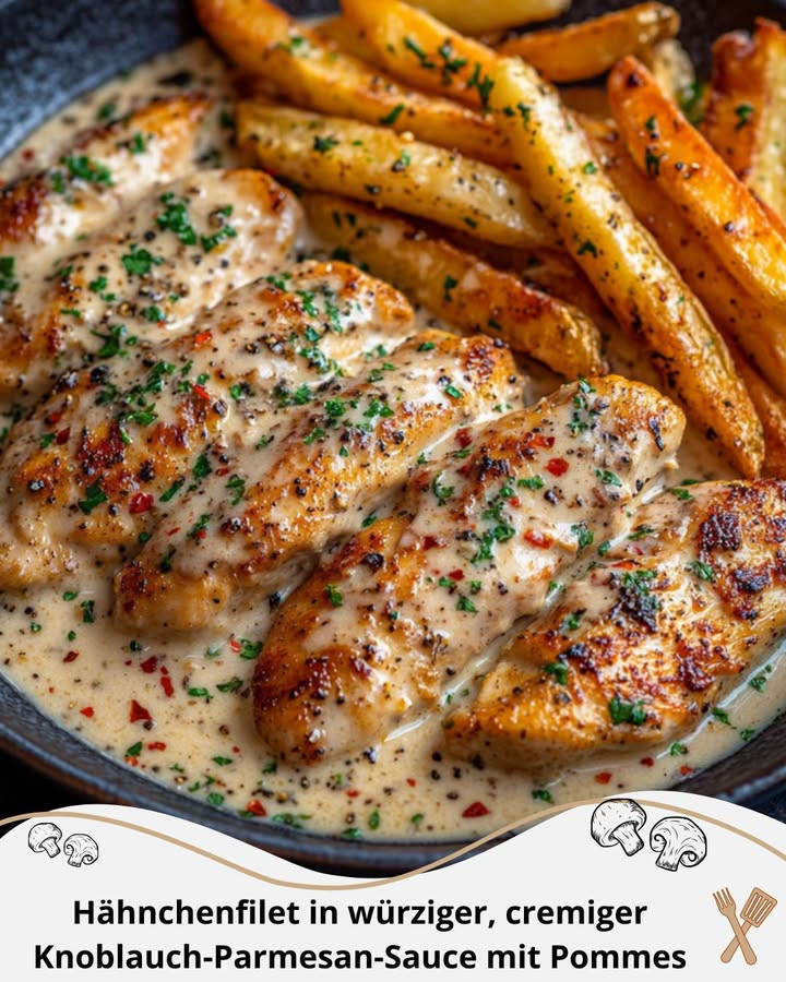 Hähnchenfilet in würziger, cremiger Knoblauch-Parmesan-Sauce