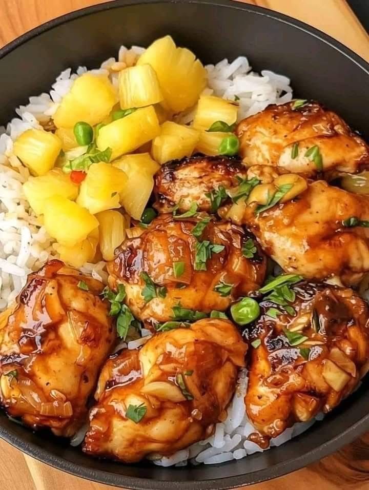 Diese hawaiianische Ananas-Hähnchen-Reis-Pfanne kombiniert zartes, saftiges Hähnchenfleisch mit süßer, saftiger Ananas, pikanter Sojasauce und aromatischem Jasminreis. Es ist ein köstliches Ein-Pfannen-Gericht, das herzhafte, süße und leicht säuerliche Aromen in sich vereint. Dieses Gericht eignet sich perfekt für das Abendessen unter der Woche, da es schnell und einfach zubereitet ist und Ihrem Tisch eine tropische Note verleiht. Frische Frühlingszwiebeln und Sesamsamen verleihen dem Gericht einen leichten Biss und eine zusätzliche Geschmacksnote. Mit einfachen Zutaten ist dieses Rezept eine fantastische Wahl, wenn Sie etwas Leckeres und Einzigartiges zugleich suchen.