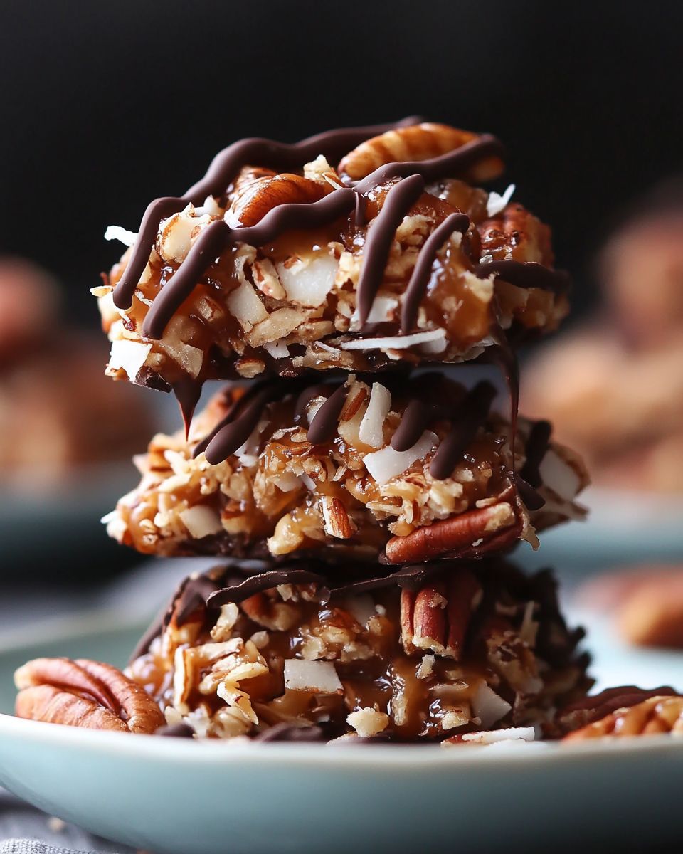 Kokos-Pekannuss-Pralinen-Kekse ohne Backen mit dunkler Schokoladenglasur
