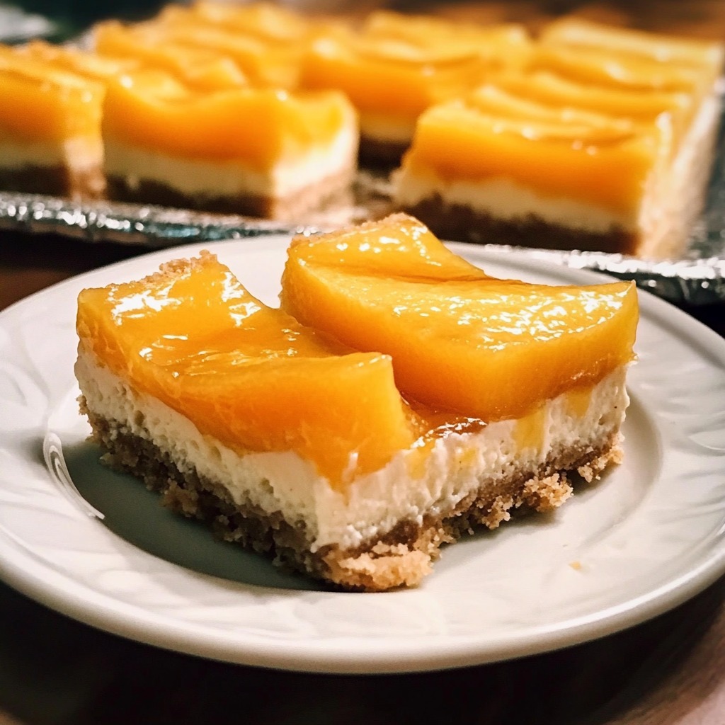 Genießen Sie den himmlischen Geschmack der Delicious Peach Cheesecake Bars , einem Dessert, das die cremige Fülle von Käsekuchen mit der saftigen Süße frischer Pfirsiche vereint. Diese Riegel eignen sich perfekt für jeden Anlass, egal ob Sommerpicknick, Familientreffen oder einfach nur als kleine Belohnung für sich selbst. Der buttrige Boden, die zarte Käsekuchenschicht und der köstliche Pfirsichbelag ergeben eine unwiderstehliche Kombination, die garantiert jedem schmeckt.