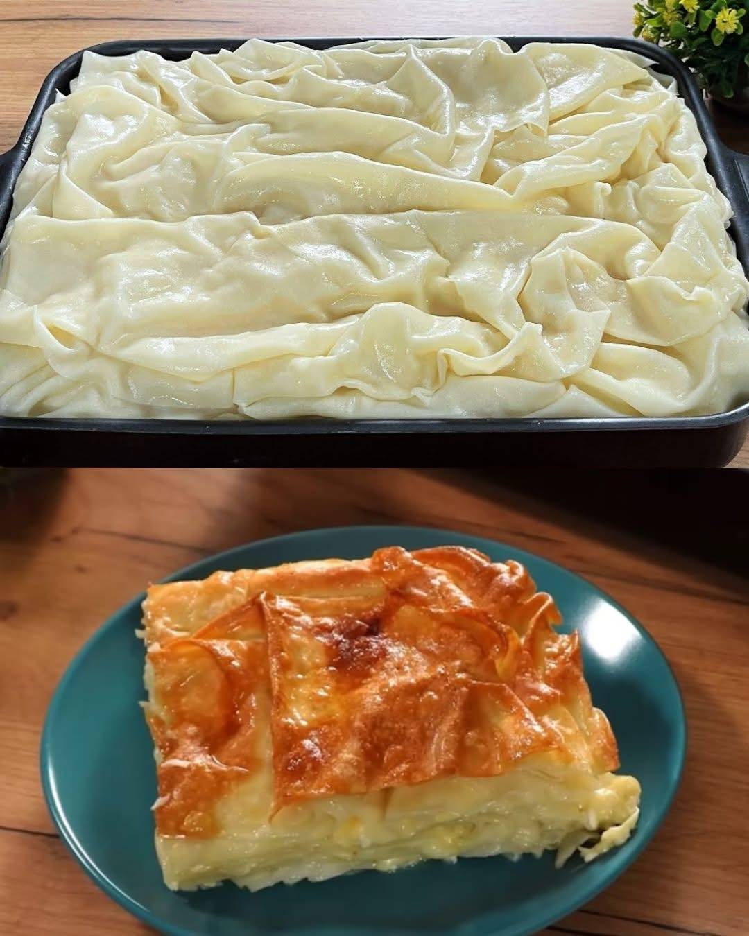 Dieses Käse-Schichtgebäck ist ein reichhaltiges, köstliches Gericht mit weichen Teigschichten und einer herzhaften Käsefüllung. Der Teig wird vor dem Backen gekocht, wodurch er eine einzigartige Textur erhält, die perfekt mit der cremigen Käsefüllung harmoniert. Dieses Gebäck eignet sich hervorragend zum Mittag- und Abendessen oder als besonderes Highlight für Gäste. Die Kombination aus Suluguni-Käse , holländischem Käse und Hüttenkäse ergibt eine aromatische und klebrige Füllung, die jeden Bissen unwiderstehlich macht.