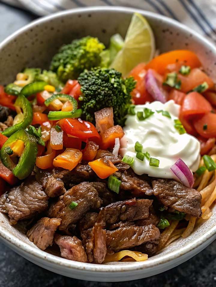 – 450 g Flanksteak oder Sirloin, dünn geschnitten