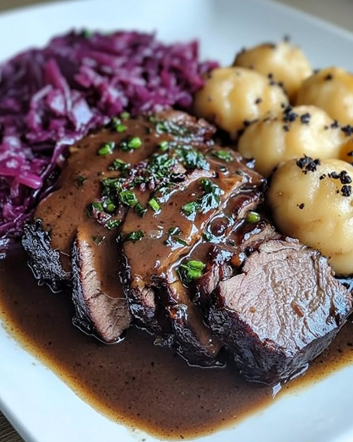 Hallo zusammen! Heute zeige ich euch, wie ihr den klassischen deutschen Sauerbraten mit köstlichem Rotkohl und Gnocchi oder schlesischen Knödeln zubereiten könnt. Dieses Gericht ist perfekt für gemütliche Abende und wird eure Familie begeistern! Lasst uns direkt loslegen!