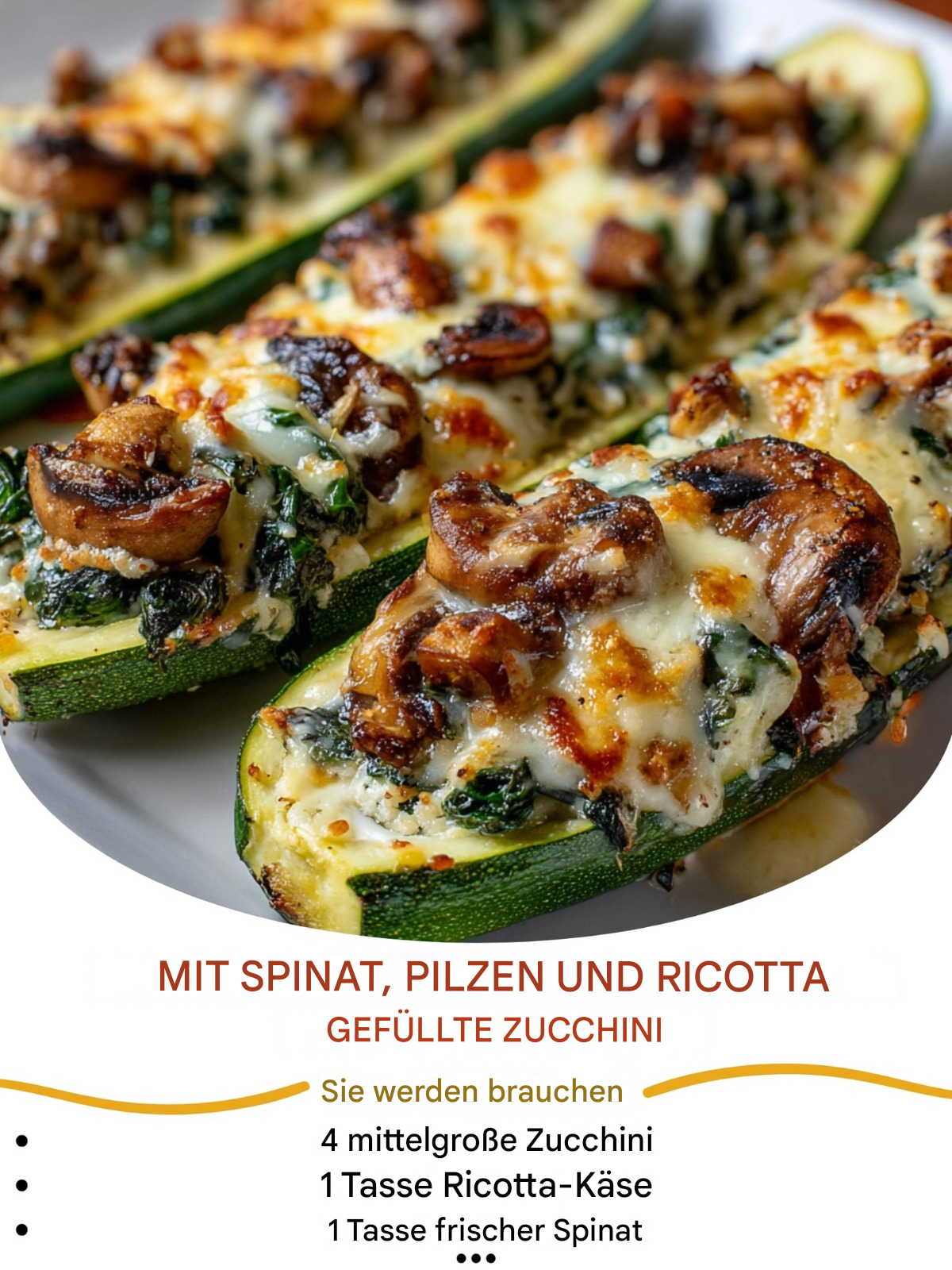 Wenn Sie ein leichtes und dennoch aromatisches Gericht suchen, ist dieses Rezept für Spinat-Pilz-Ricotta-Zucchini genau das Richtige. Die Kombination aus zarter Zucchini, erdigen Pilzen, frischem Spinat und cremigem Ricotta macht dieses Gericht ebenso nahrhaft wie köstlich. Ob als Beilage, vegetarisches Hauptgericht oder kohlenhydratarme Alternative zu Pasta – dieses Rezept wird garantiert zu einem Klassiker in Ihrer Küche. Wir zeigen Ihnen, wie Sie dieses gesunde und sättigende Gericht zu Hause zubereiten können!