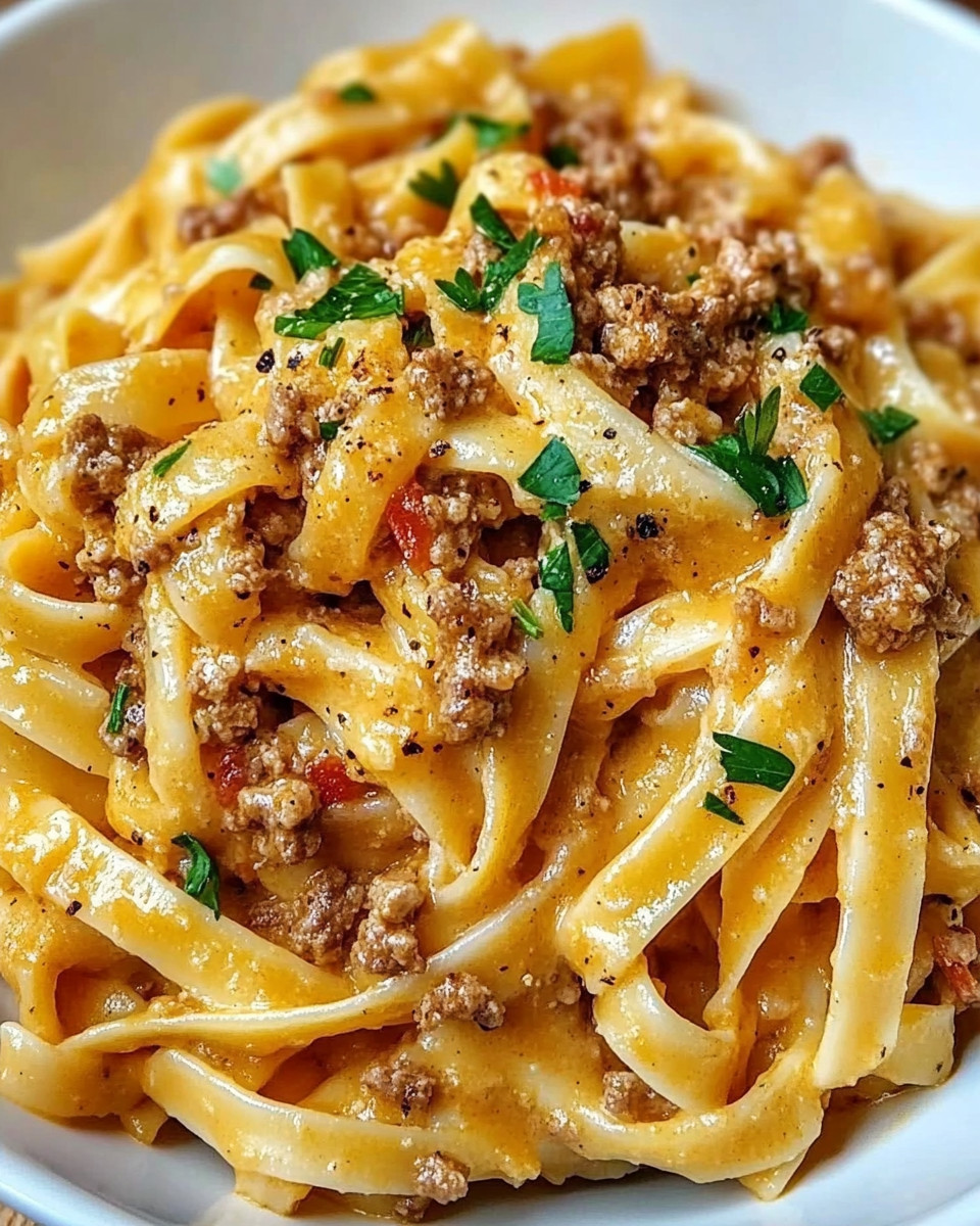 Titel: Cremige Knoblauch-Parmesan-Wurst mit Fettuccine