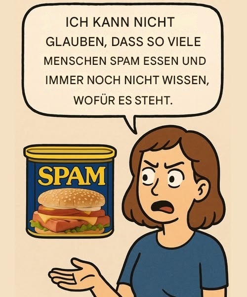SPAM ist eine Marke für vorgegartes Dosenfleisch der Hormel Foods Corporation. SPAM wurde 1937 erstmals als preiswerte, haltbare Proteinquelle vermarktet. Der Name ist eine Mischung aus „gewürztem Schinken“, die genaue Rezeptur bleibt jedoch ein Rätsel.